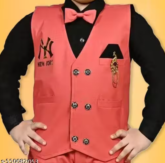 Name : Kids Boys Formal 3-Piece Suit Set – Coat Pant with Shirt & Waistcoat | Party Wear Outfit for Wedding & Special Occasions (0-14 Yrs)