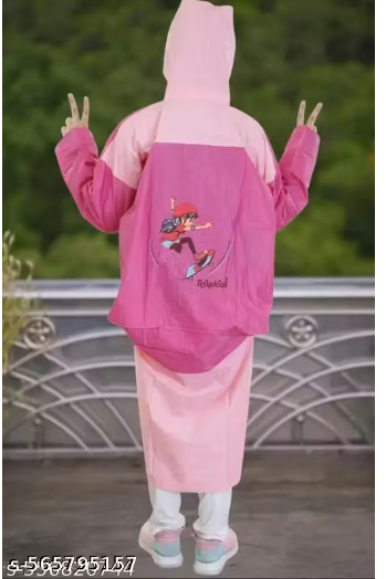 Name : KIDS HOODED WATERPROOF RAINCOAT WITH DRAWSTRING IN VARIOUS STYLISH AND VIBRANT COLORS.