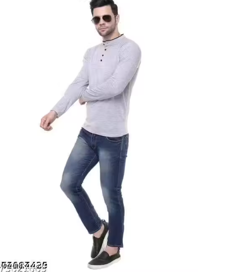 This chic men's plain mandarin collar polyester t-shirt will add flair to your outfit. This full-sleeve casual tee is comfortable and stylish, with a standard fit design. The mandarin collar elevates your casual look and is appropriate for any setting. The full sleeves add warmth and versatility, while the premium polyester fabric guarantees longevity. This stylish combo t-shirt seamlessly blends comfort and style, making it perfect for guys who are fashion-forward. With this essential men's mandarin collar t-shirt, you may dress up your regular outfit.